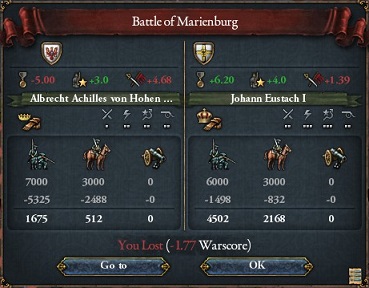 兵力ではこちらがやや上回っていたのだが・・・騎士団長ヨハン・オイスタッハの指揮により敗北。