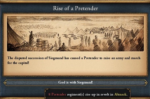 能力は6/3/3と結構いい感じなのだが、クレームがWeakだったので僭称者反乱が発生、数8千。