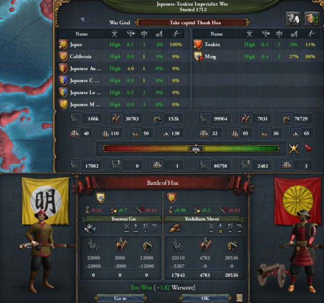 1712年3月日本は明の朝貢国トンキンに宣戦布告した。明はトンキンの要請を受け参戦した。