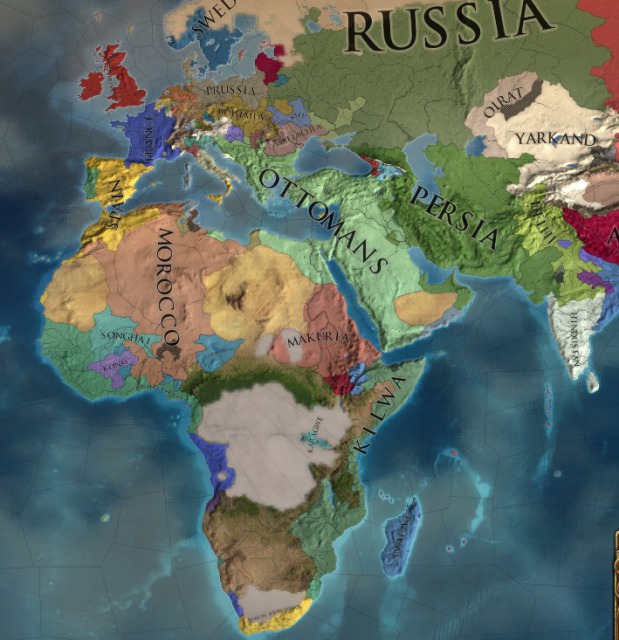 プロシアが誕生しているな…アフリカは地域の大国と南蛮人の植民地に分割されておるな。