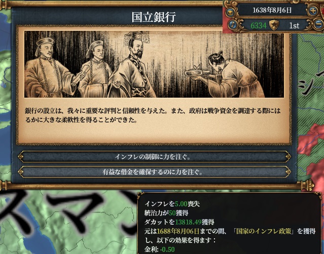 ここでようやくの国立銀行イベントです、ゲームを通して制御に振り回された印象ですが、結構ちょうどいい時間に発生
