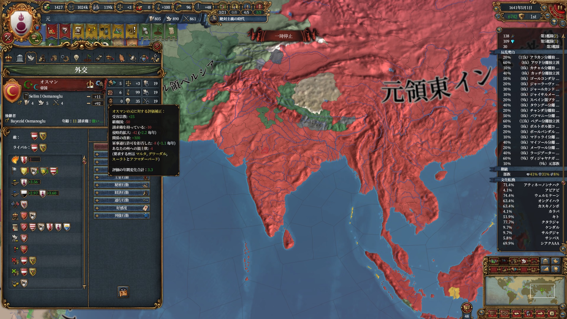 進行の方は順調。インドをほぼ手中に収めました。