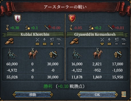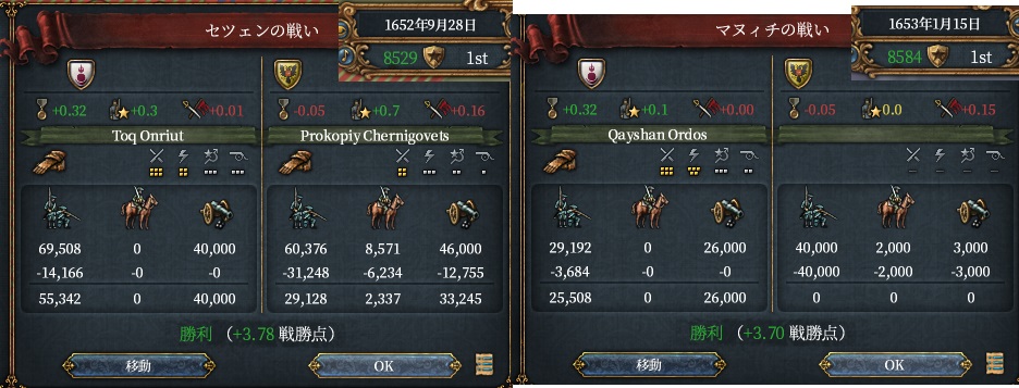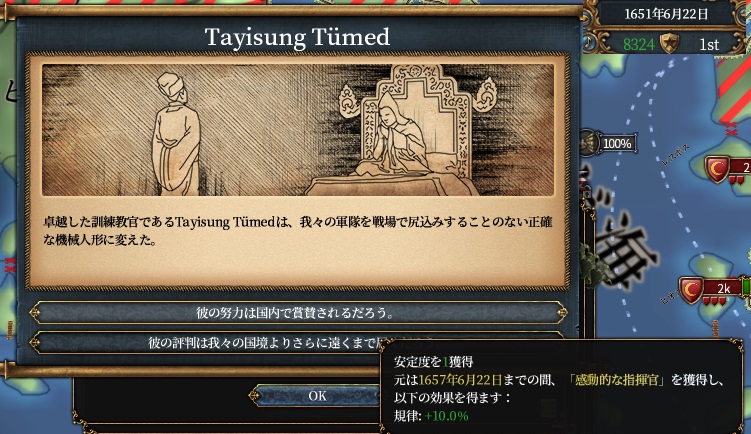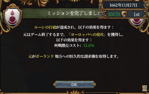 これにてオイラトミッションの州戦勝点コスト-15%達成です