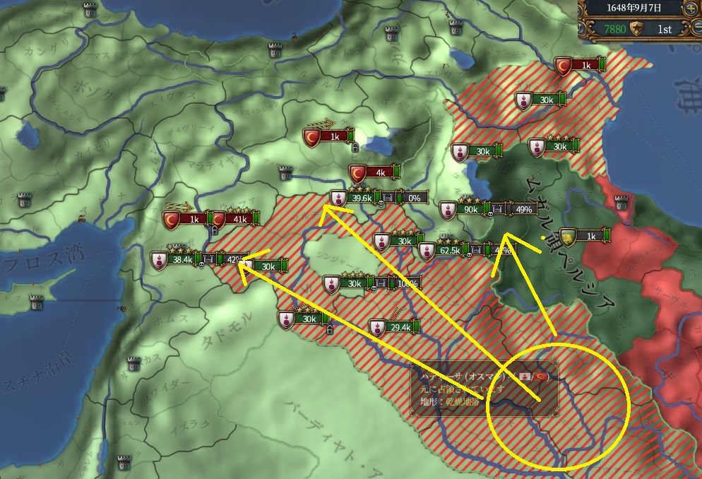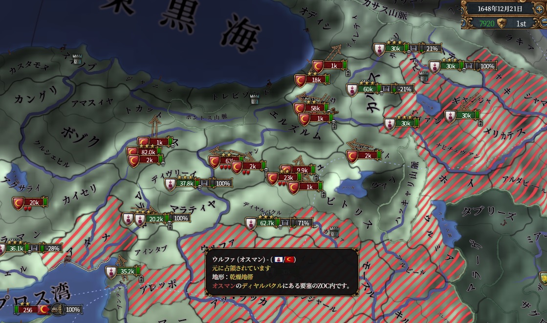 要塞奪ったのでzocもなく浸透が早いですね。オスマン兵を数の暴力で蹴散らします