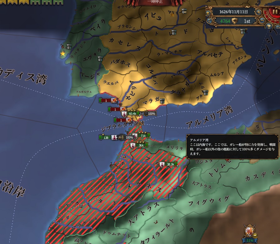 自慢の軍質で軽くいなしつつモロッコからイベリアに上陸していきます