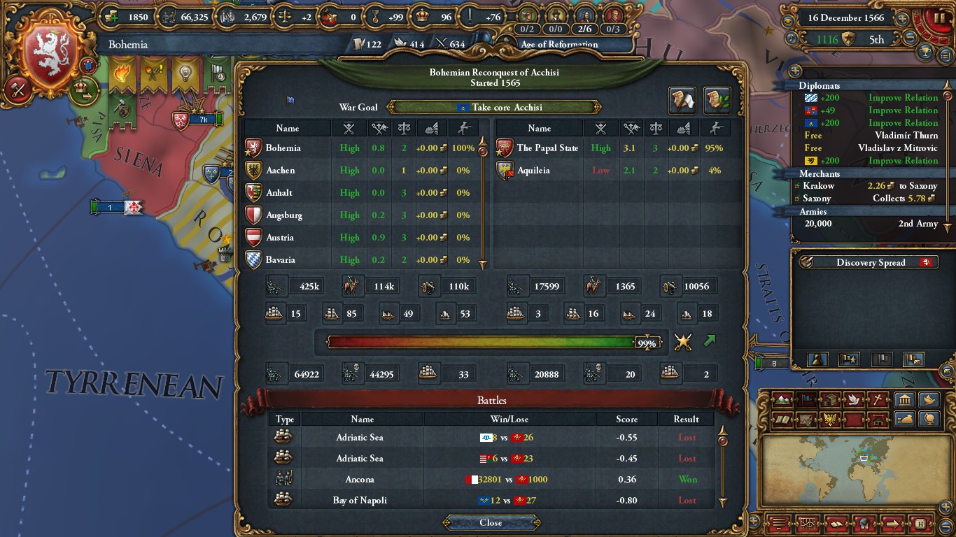 教皇の御者になれなかったら、ミッションのために教皇領滅ぼそうかと考えていたが、なんとか1602年、我が国が選ばれた。