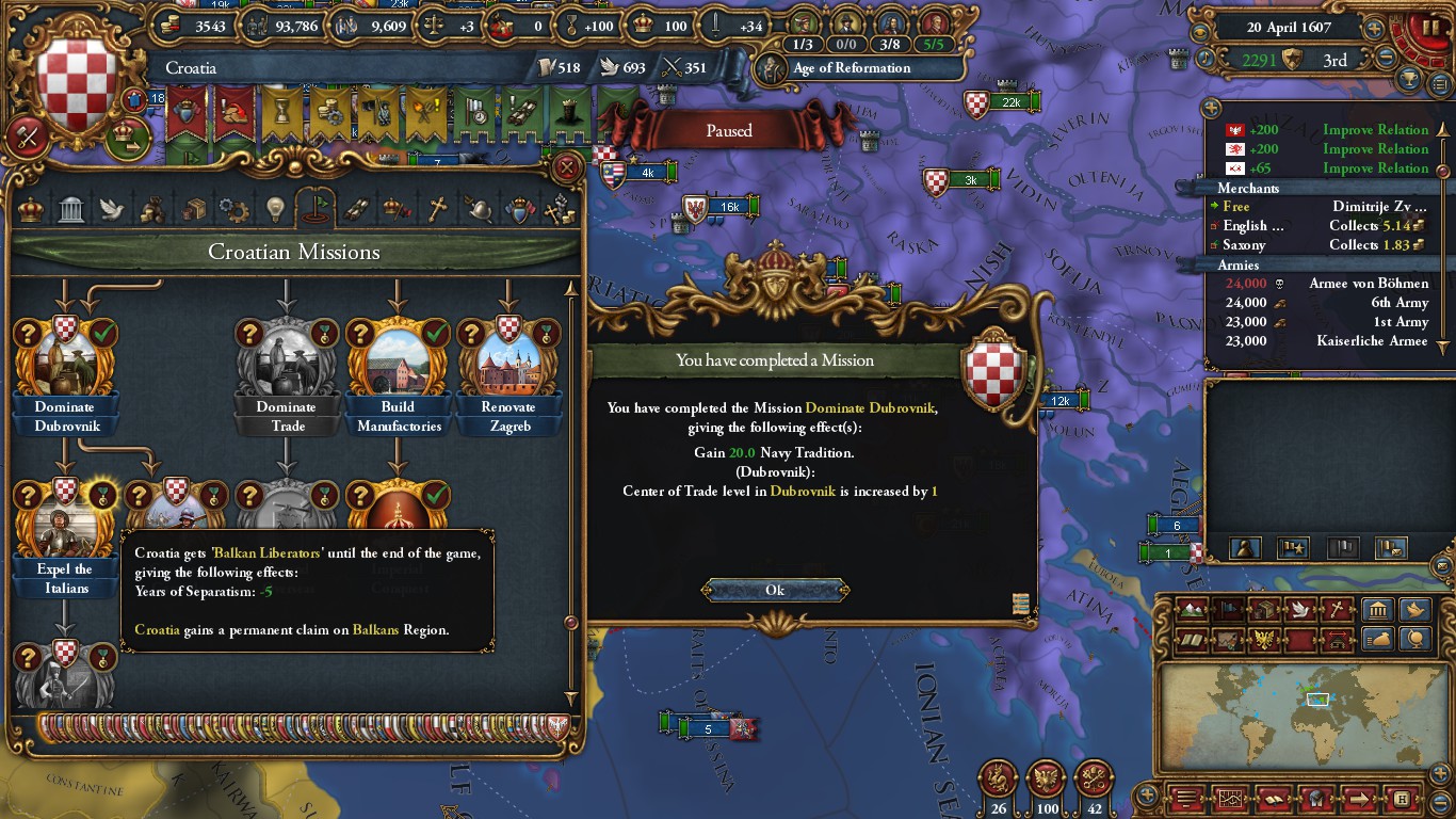 分離主義-5年のミッション報酬を受け取るにはバルカン半島からダルマチア文化以外のラテン文化グループの国を追い出す必要がある。