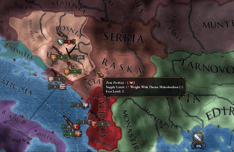 開始即座にボスニアに宣戦布告+Ragusaに通行許可申請。