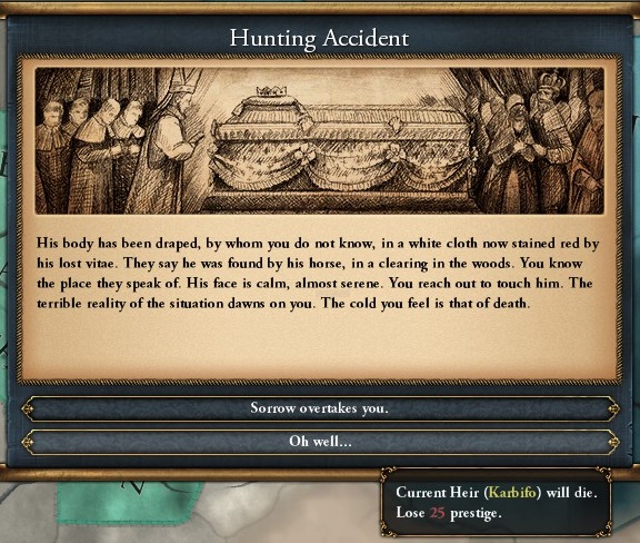 もはや敵はなくカービフォの名は全土に轟くと思われた。しかし好事魔多しという。カービフォは気分転換を兼ね草原に狩りに出かけた。そこに突然現れたシマウマの群れ。驚いた馬はカービフォを振り落した。打ち所が悪かったのかカービフォが再び目を開くことはなかった。訃報を聞いたスンニ・ダウドは「仕方のないやつだ。」と言っただけだったという。