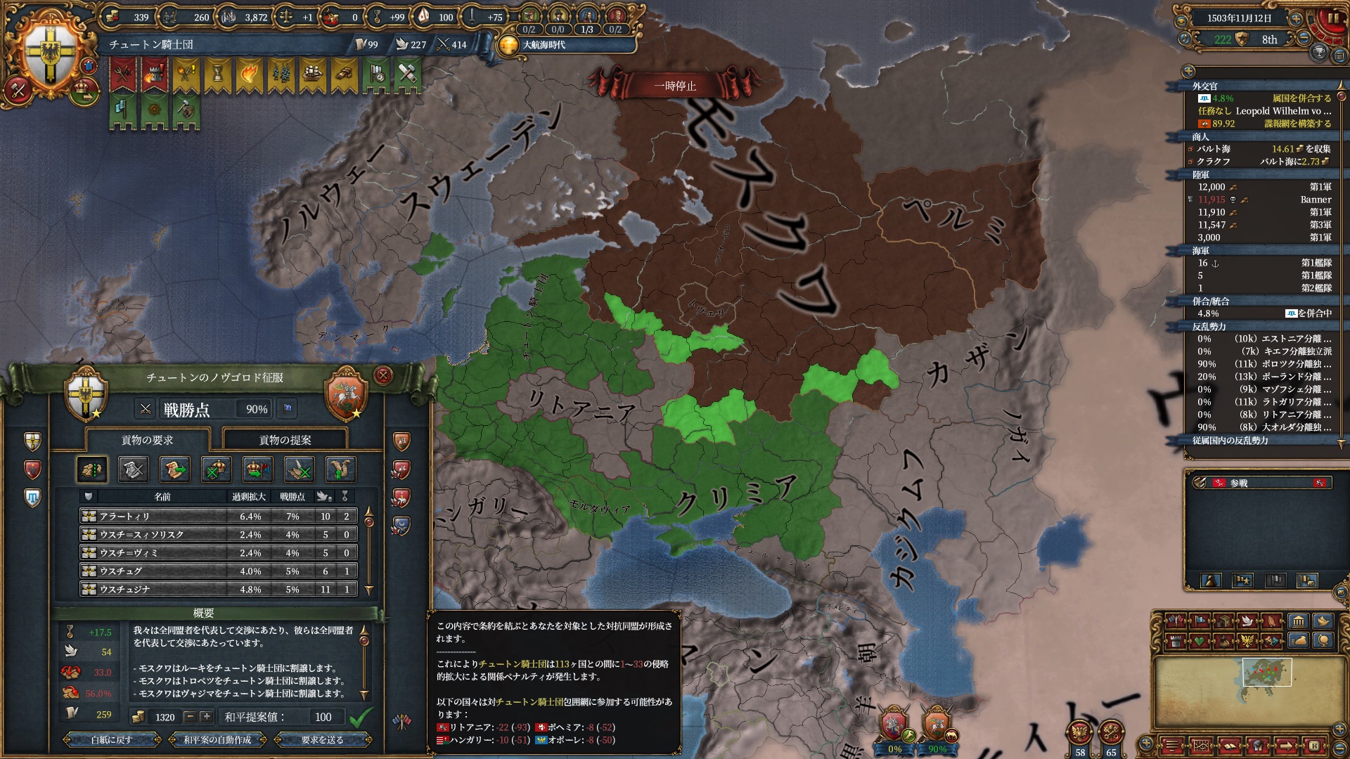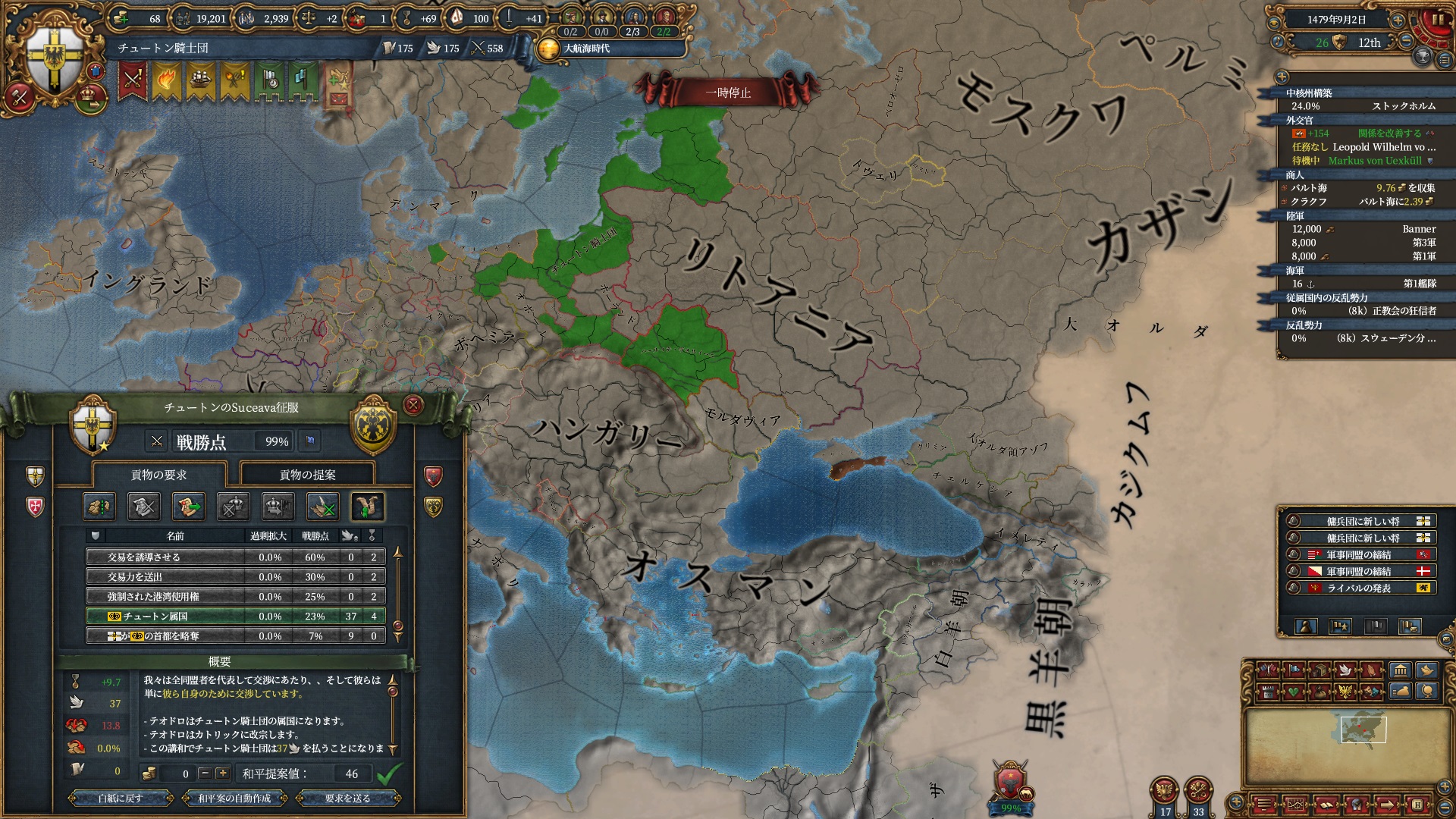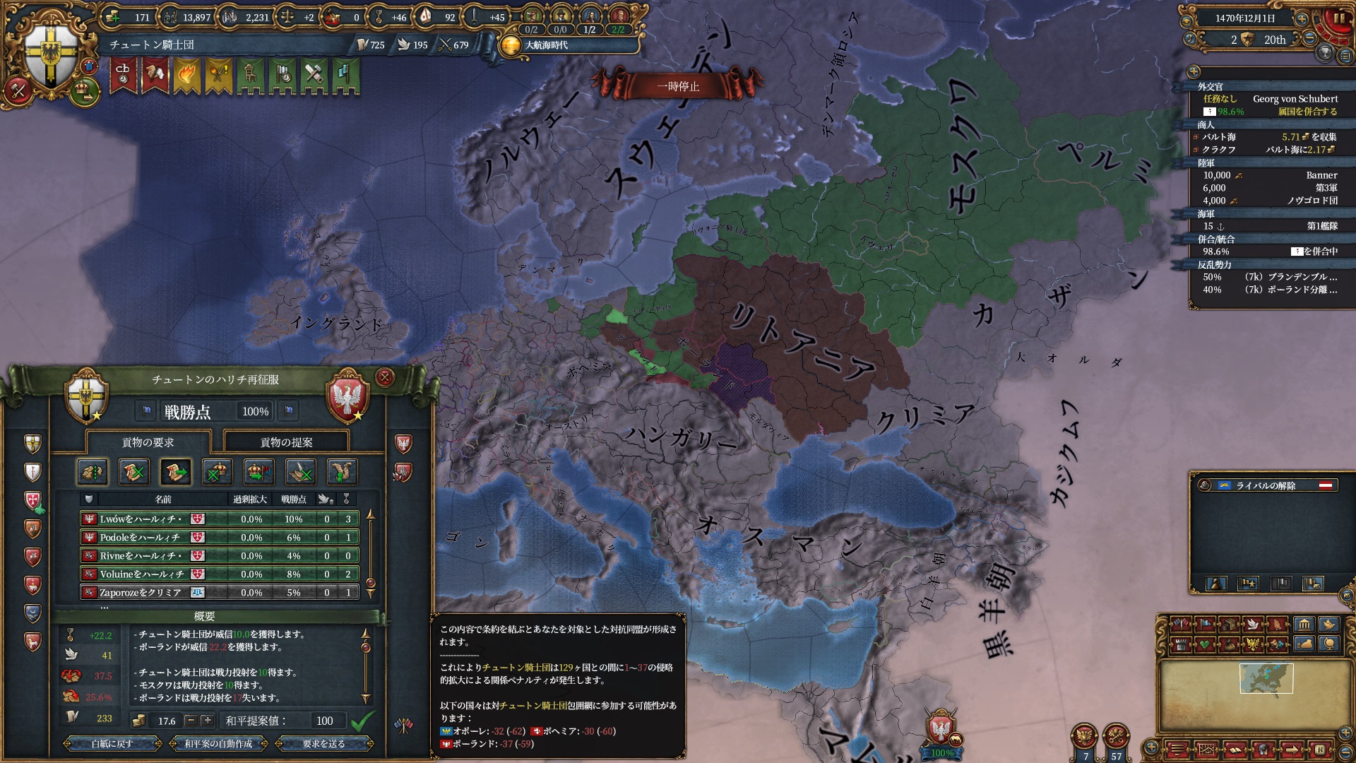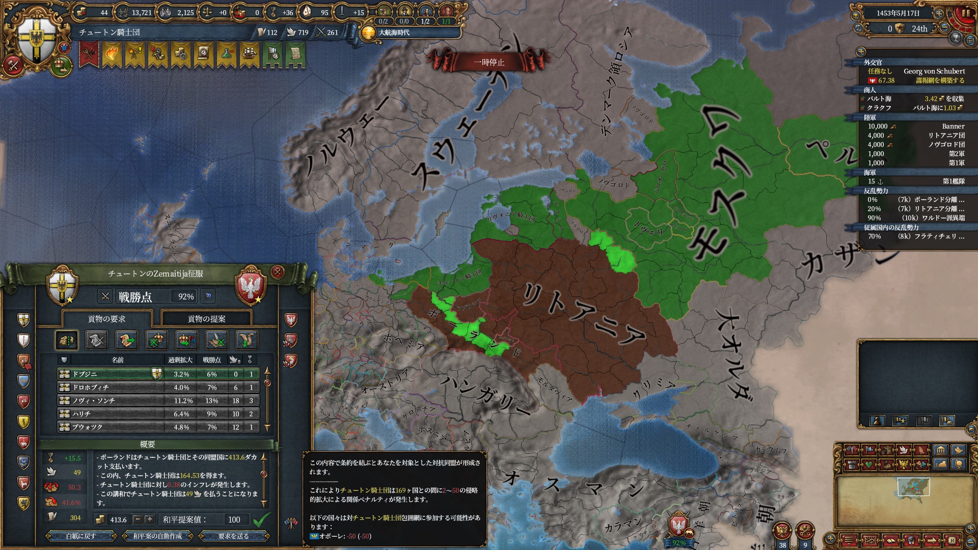 かといってヒストリカルライバルのポーランド属国化→再征服は非常にリスキーなので見届ける事ぐらいしか出来ません・・・