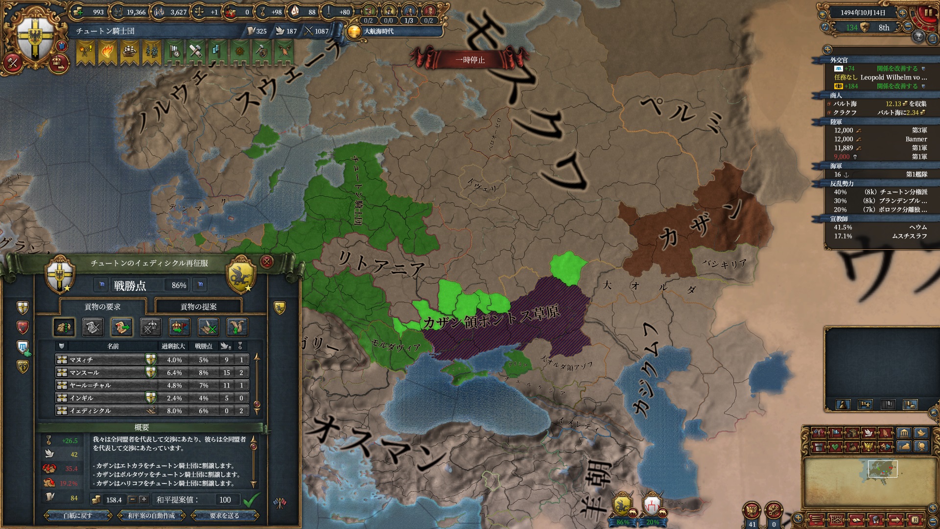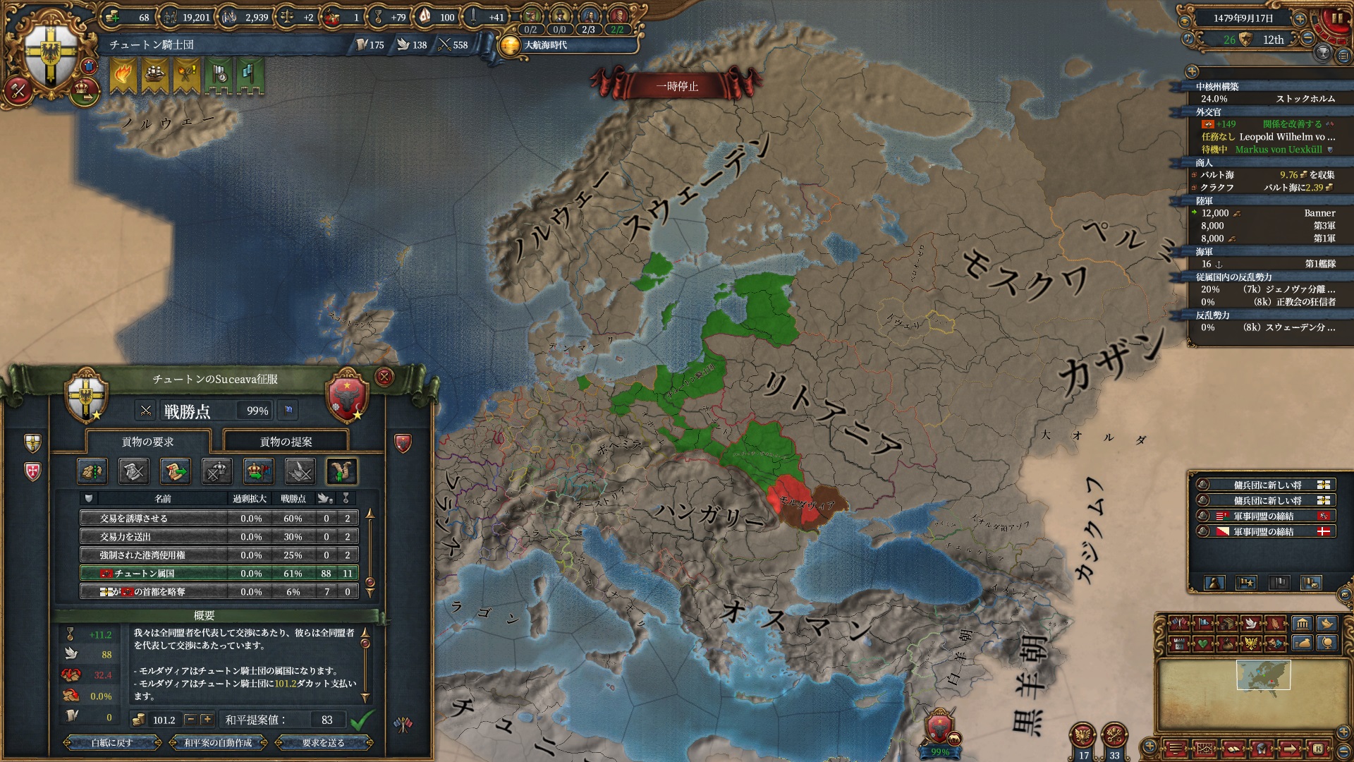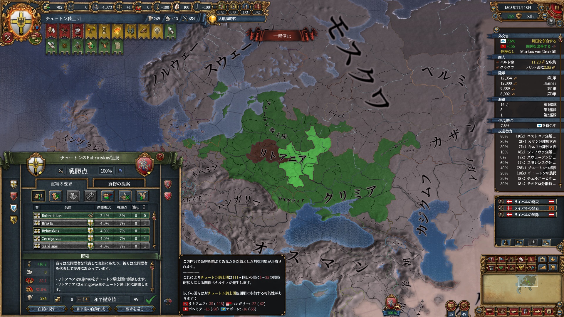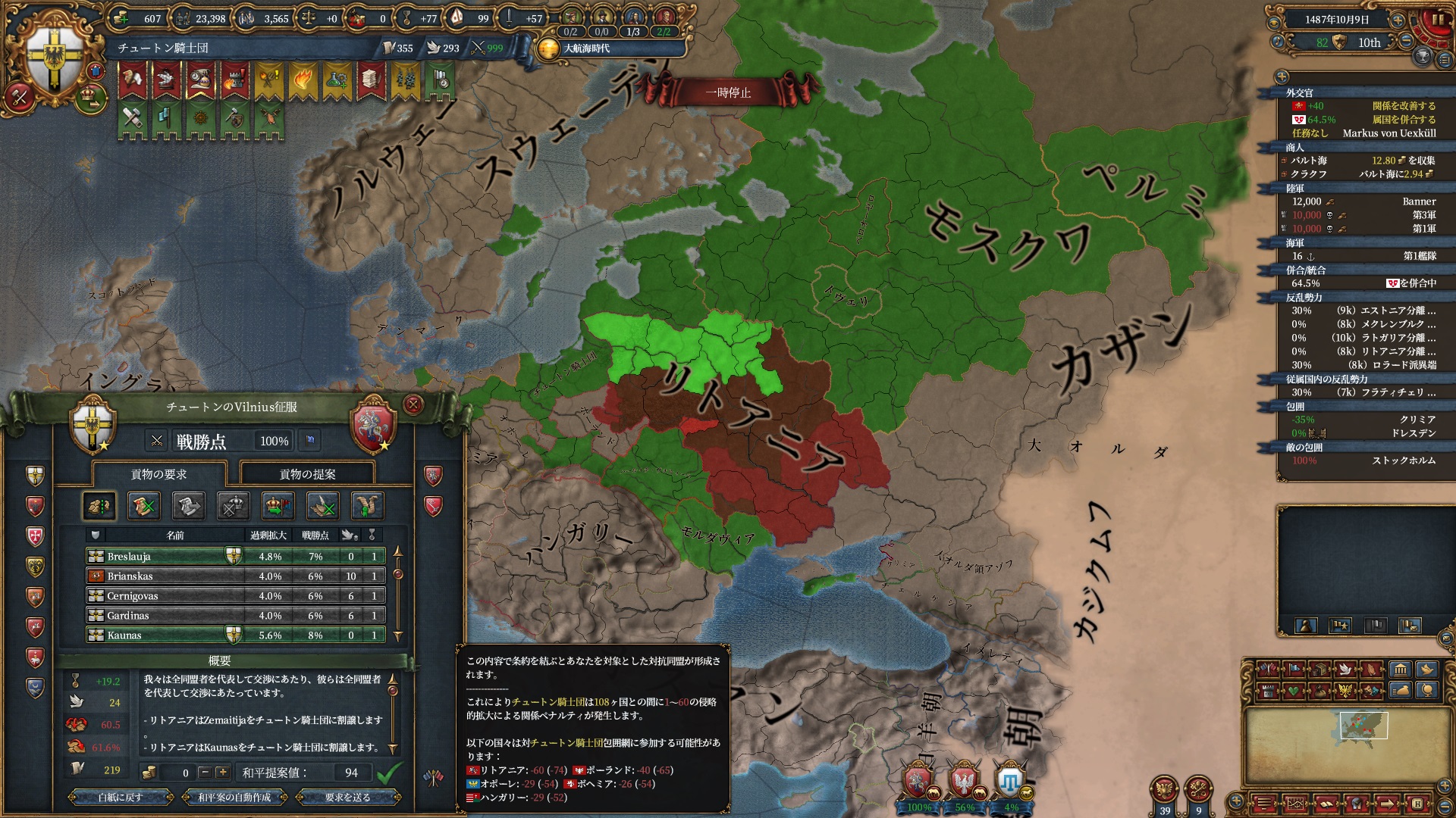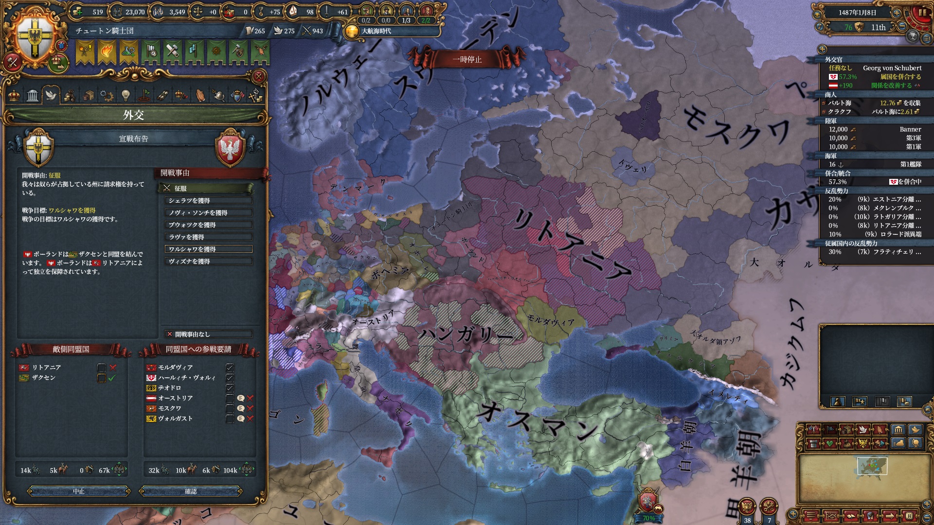 かといってヒストリカルライバルのポーランド属国化→再征服は非常にリスキーなので見届ける事ぐらいしか出来ません・・・