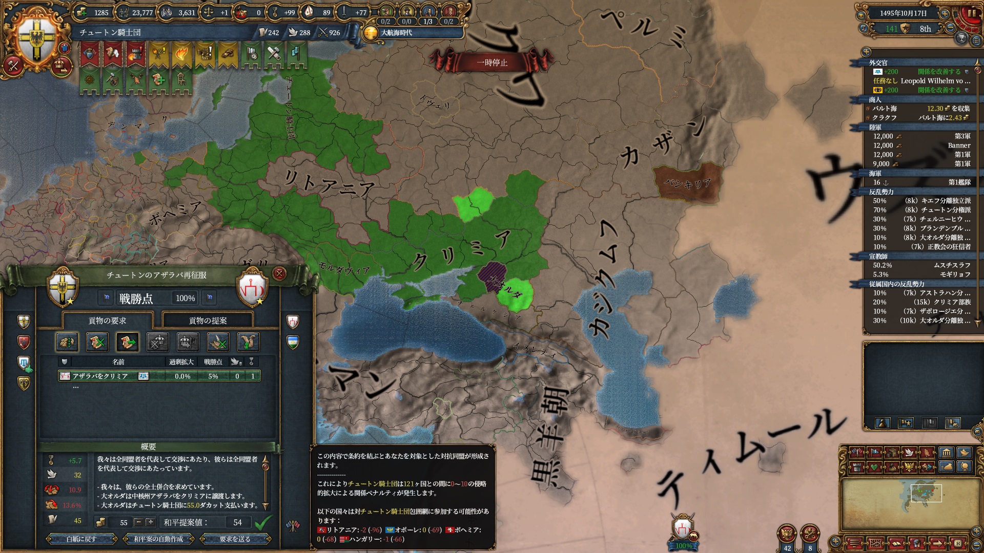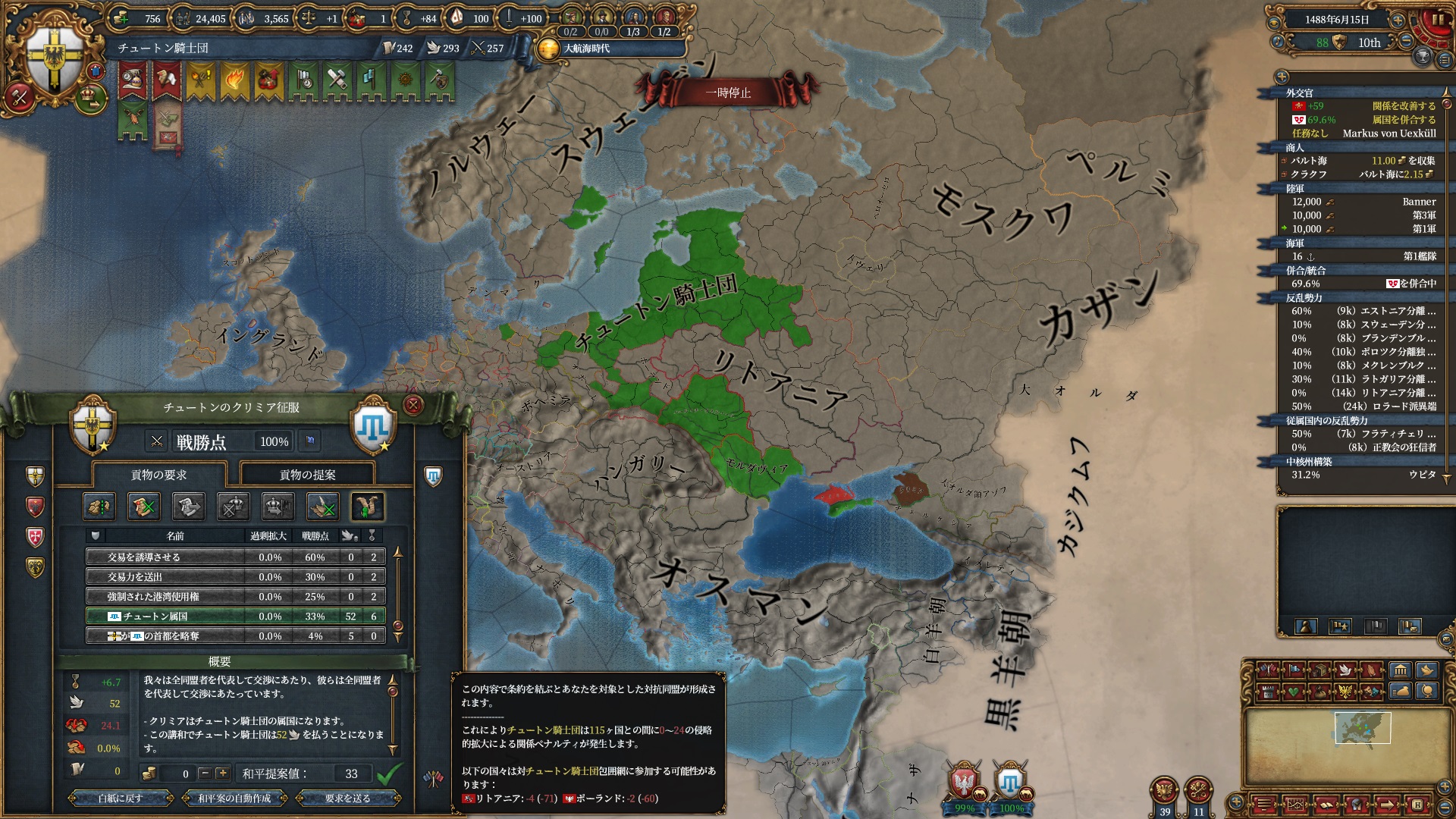 このレベルまで縮小したクリミアを属国化して再征服を決められるのは非常に有用です。