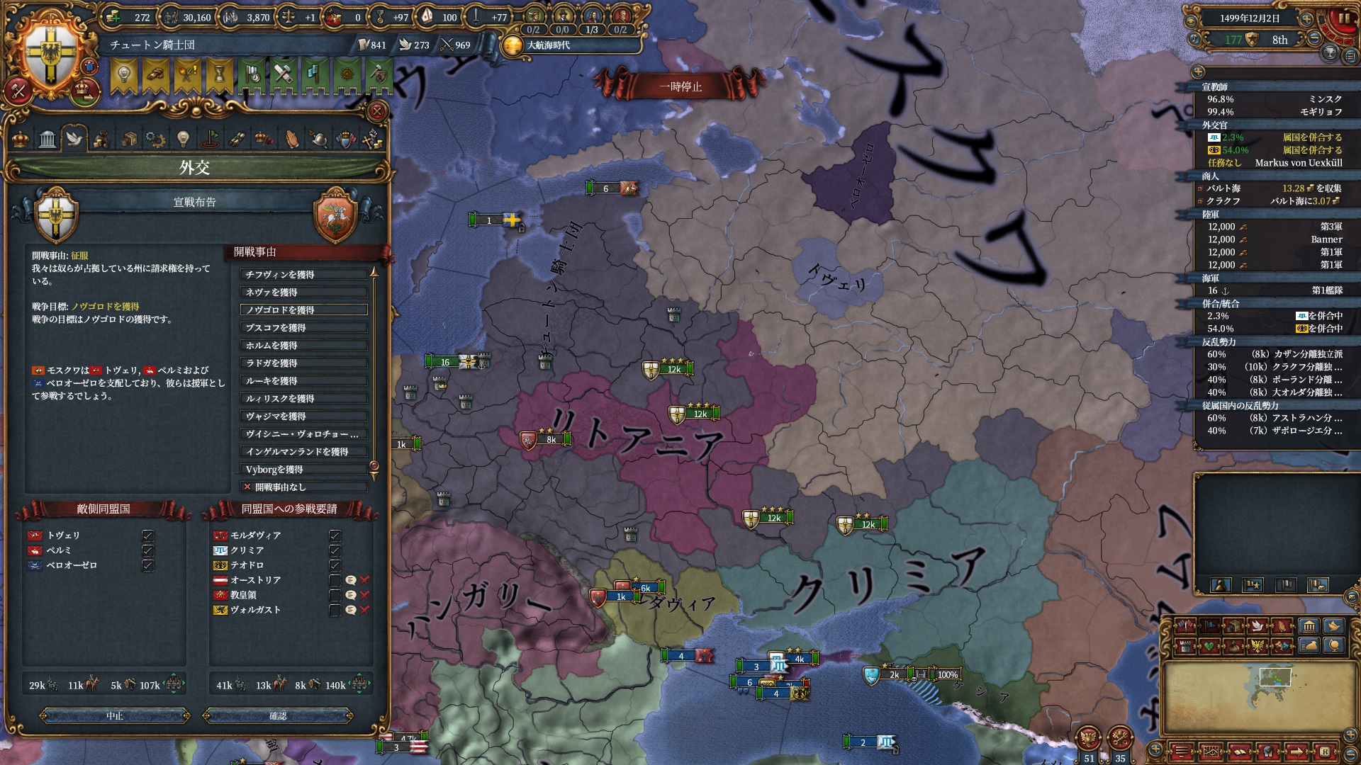 ここからポーランド戦まで端折っていますが、ノヴゴロド戦後にモスクワがポーランドライバル視→友好姿勢となり同盟が組めています。