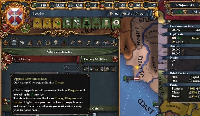 また1476年、ようやく威信が50を上回ったことで王国への昇格を果たします。
