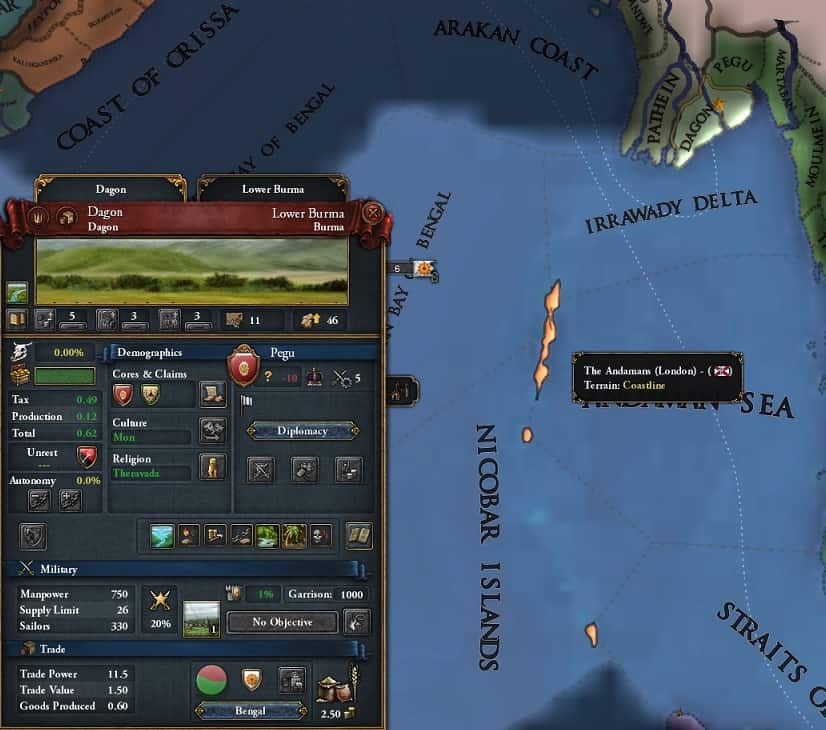 インドシナ西部のThe Andamansへの植民が可能になります(請求をつけたら即刻植民地は放棄し、Bermudaへの植民を開始します)。