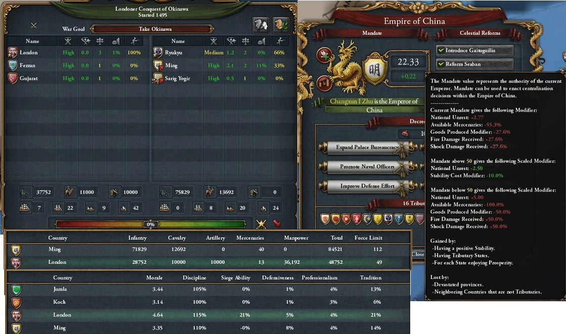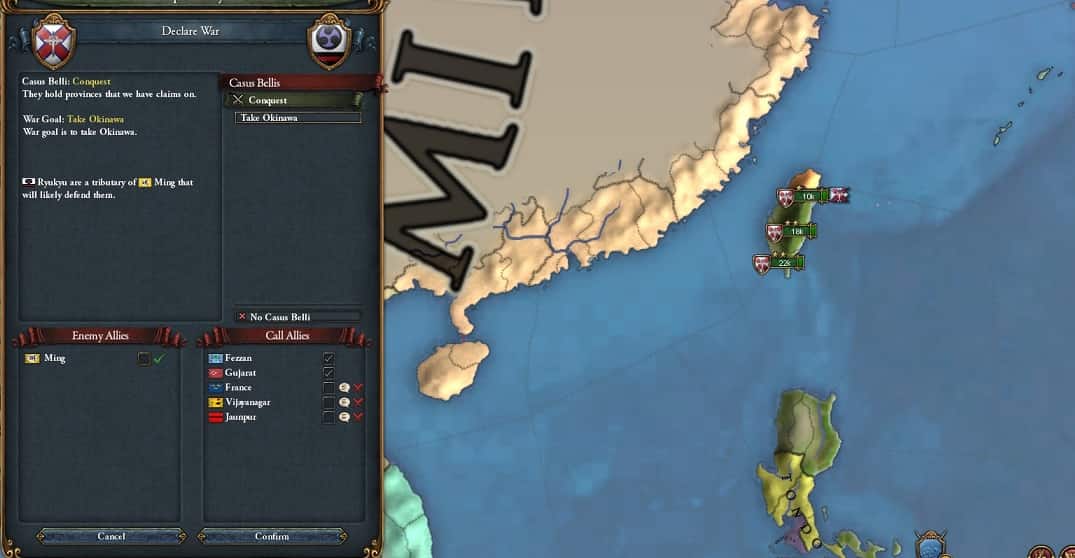 翌1493年にMingはYarkandとの戦争を開始します。これを好機とみて全軍が北に向かったであろう1495年、満を持してRyukyo&Mingとの戦争を開始します。