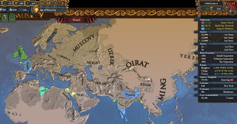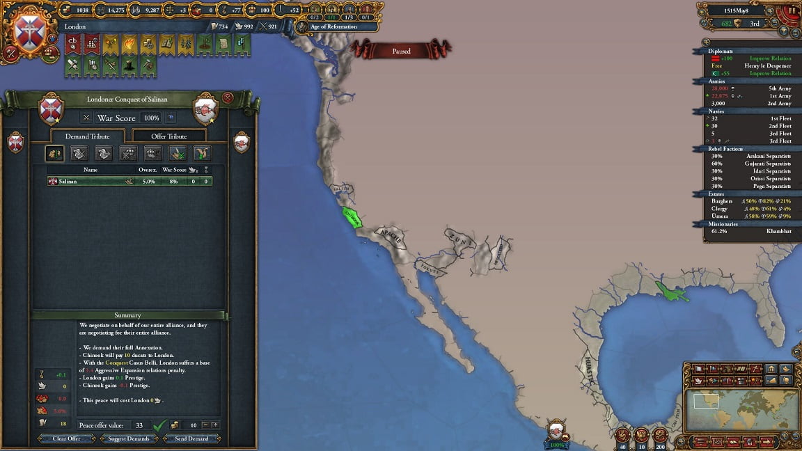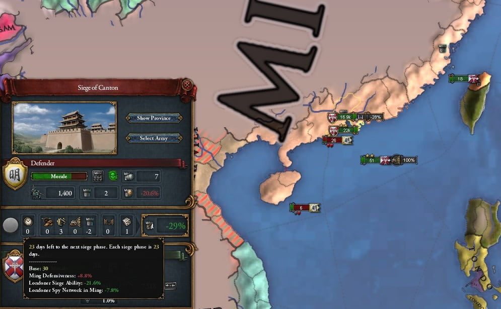 1498年、大きな陸戦は1度きりのまま目標4つ目となるCantonの獲得に成功します。