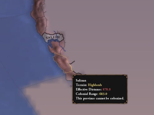 あとは2段階で中核化して、Salinanに植民するだけ...となったと思いきや先住者が。