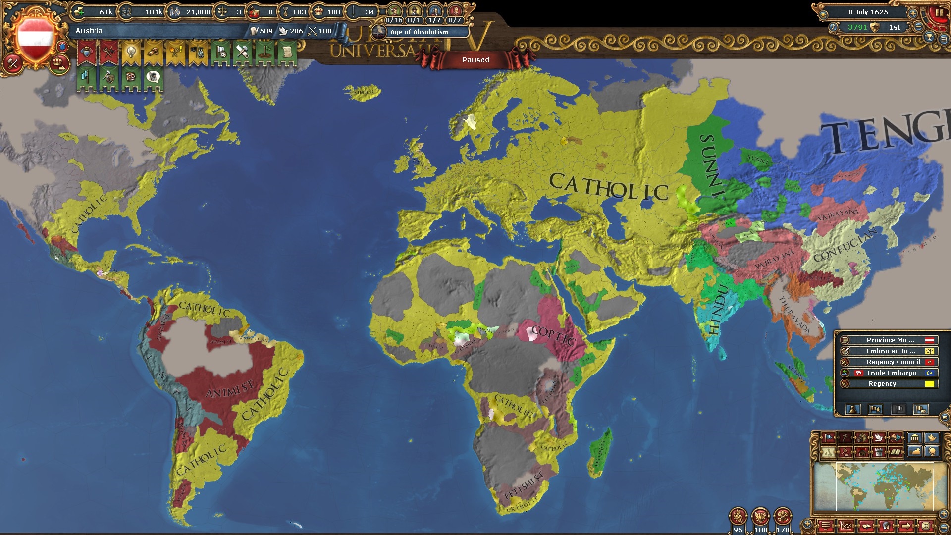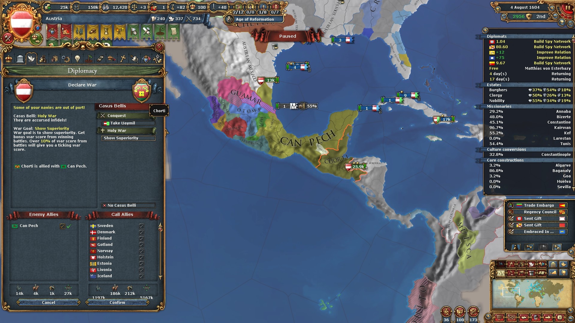 オスマンAARの時と違い神聖ローマ帝国ファンネルプレイでは、自国領を少なくできるので改革ポイントを稼ぐことが可能となります。