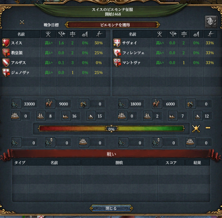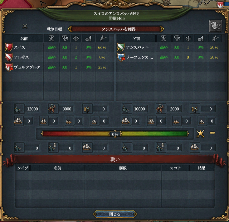 アルザスは属国にします。こいつLv.3要塞持ってるので戦争時に時間稼ぎの役に立つんですよ。で、次が非常に大切な戦争になります。