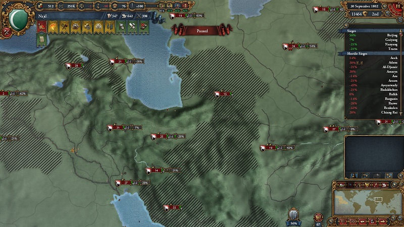 Golden Hordeのプレイの時は、まずペルシャ→次中国→最後ロシア→おまけでインドと侵略をある程度固めて行ったので、反乱がおきる地域が一定して対処しやすかった。