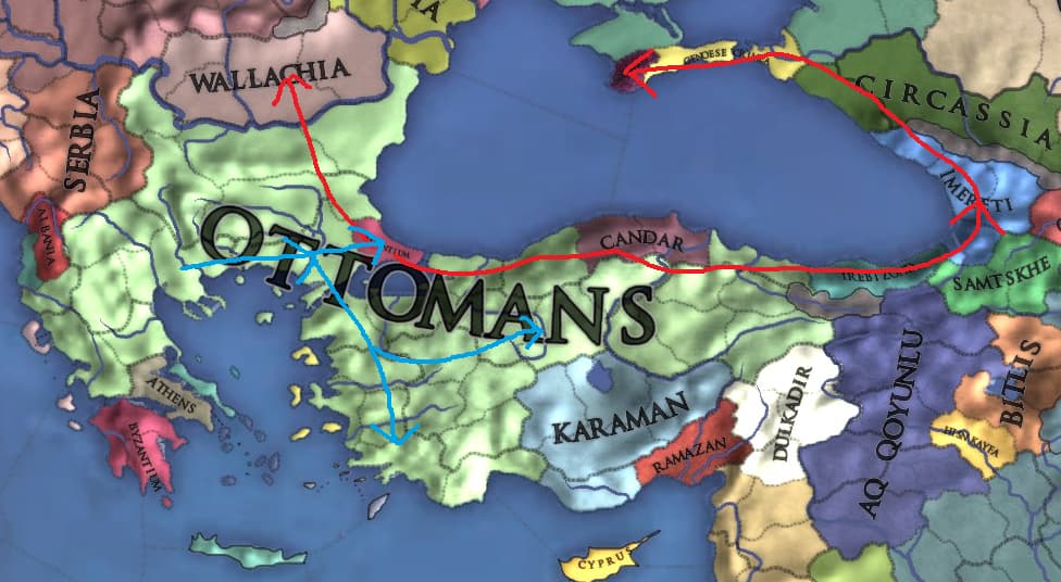この間OttomansはConstantinopleの占領に向かいますが、占領後はアナトリアを征服したImereti軍の討伐と