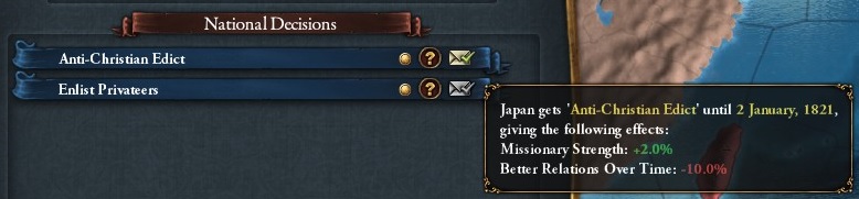 鎖国を維持することで、永続的に反乱確率を-1できる。