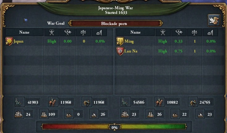 ちなみに、AAR/SunsetInvasion/第3話:忍従之刻では、1591年、陸軍技術15で時代最先端に追いついているので、69年の遅れとなる。