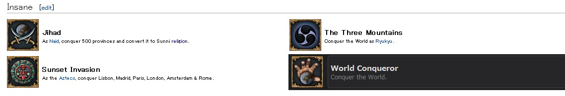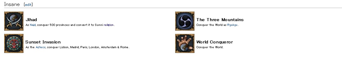 最高難易度 Insane に分類される4つの実績