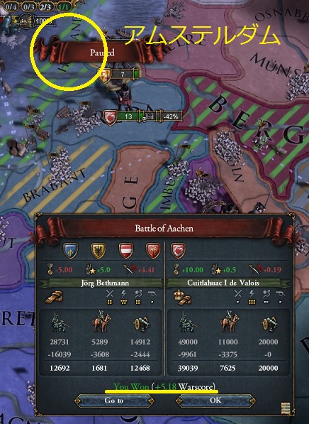 アムステルダムを占領しHRE主力を撃破しなんとか勝利。