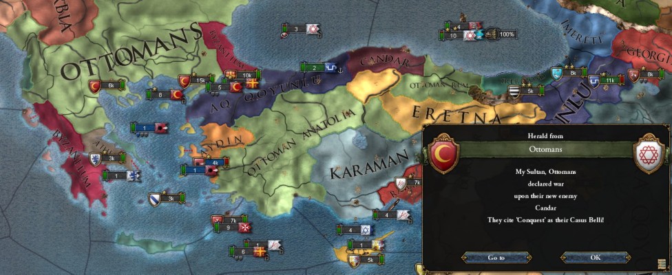 はい! オスマンに勝ったぼくたちはびっくしりたアナトリア半島の皆さんから対抗同盟を組まれてしまいました。