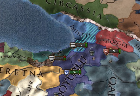 ちょうどトレビゾントさんはイメレティさんと戦争中みたいですけど、隣接州にはオスマン軍がいませんね。