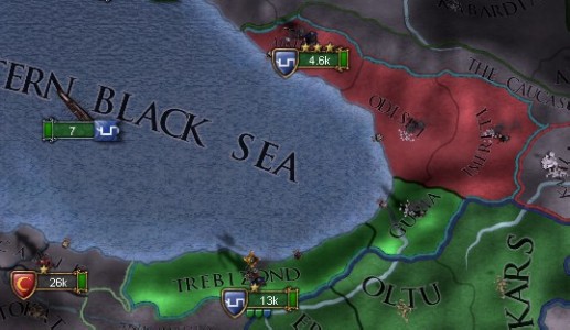 トレビゾントは中核州の一部なので直轄化、もう1州はイメレティを復活させてやろう。一気に奪うとまた対抗同盟ができてしまう。
