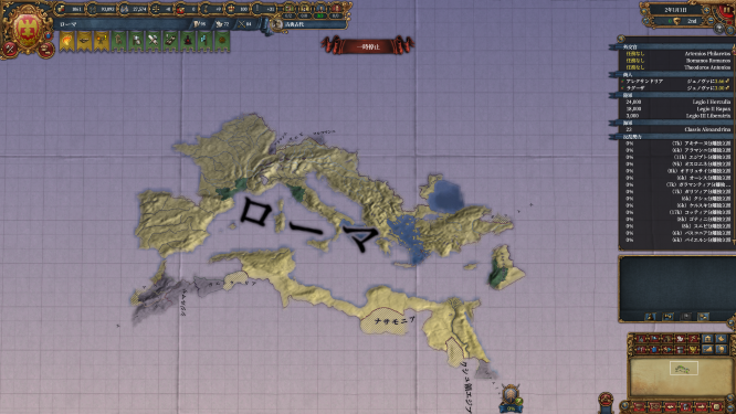 ローマは開始時点で戦争状態にあります。圧倒的な列強1位にも関わらずしょぼい戦力…