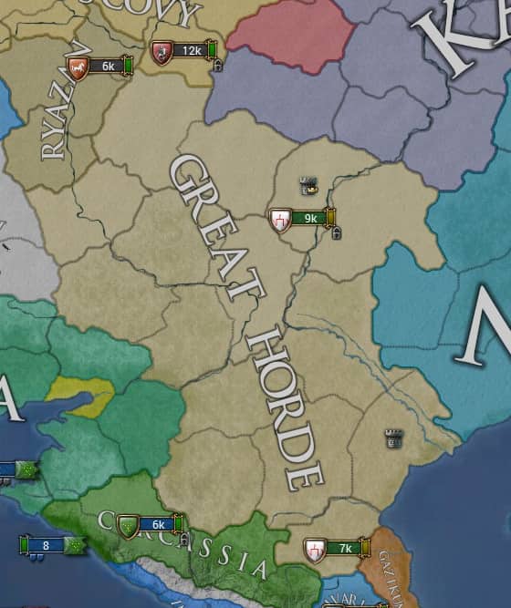 | ポントス・ステップ | A | 大オルド(ジョチ・ウルス) | Great Horde | Bahmut※内陸 | 64/58/9 | 〇(Mishar) | 〇 | ![]() | ||