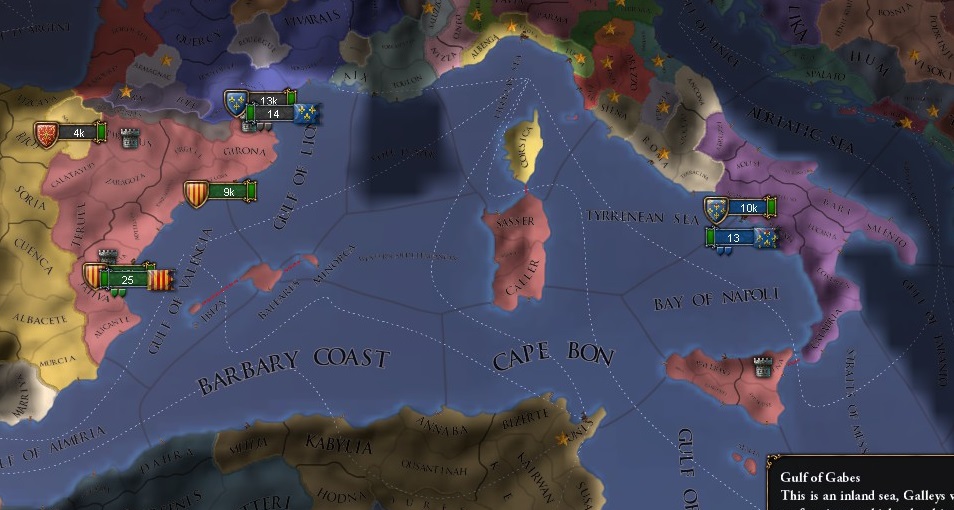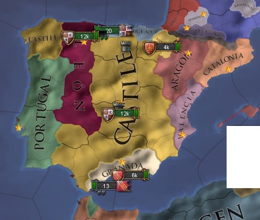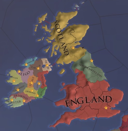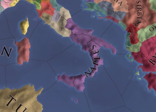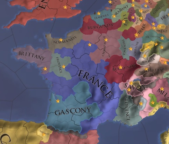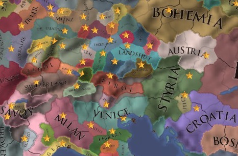 1444年開始時に多くのコアが存在し、再征服CBが有効に機能する国。多くは1594年にコアを消失してしまうため、前半戦で活躍する。