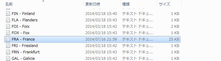 EU4の本体フォルダから「FRA - France」というファイルを探し出し、コピペして先ほど作成した「countries」というフォルダに入れてください。
