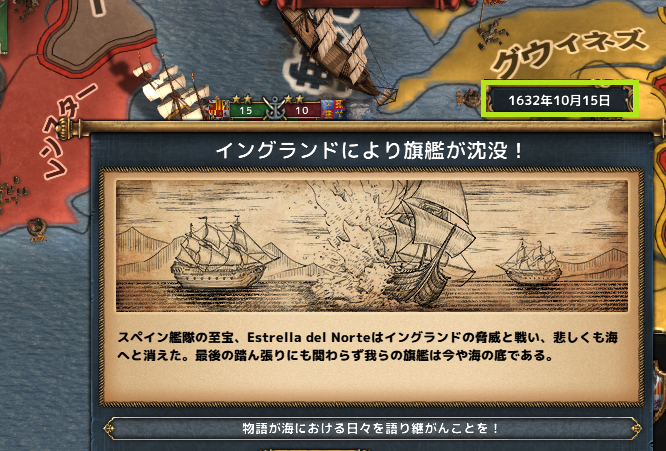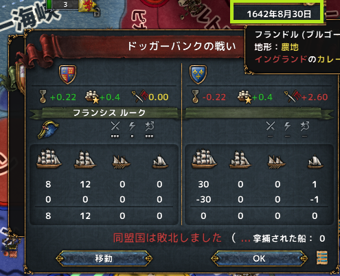 同盟参戦してきたイングランド艦隊に大敗北を喫し、唖然とする。