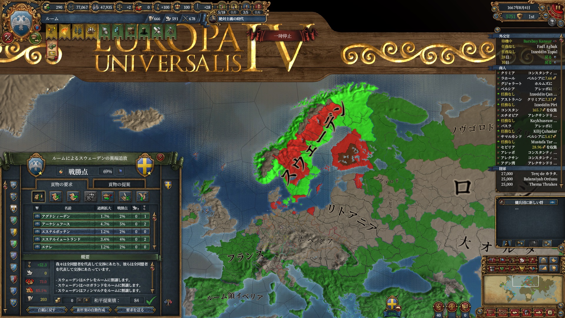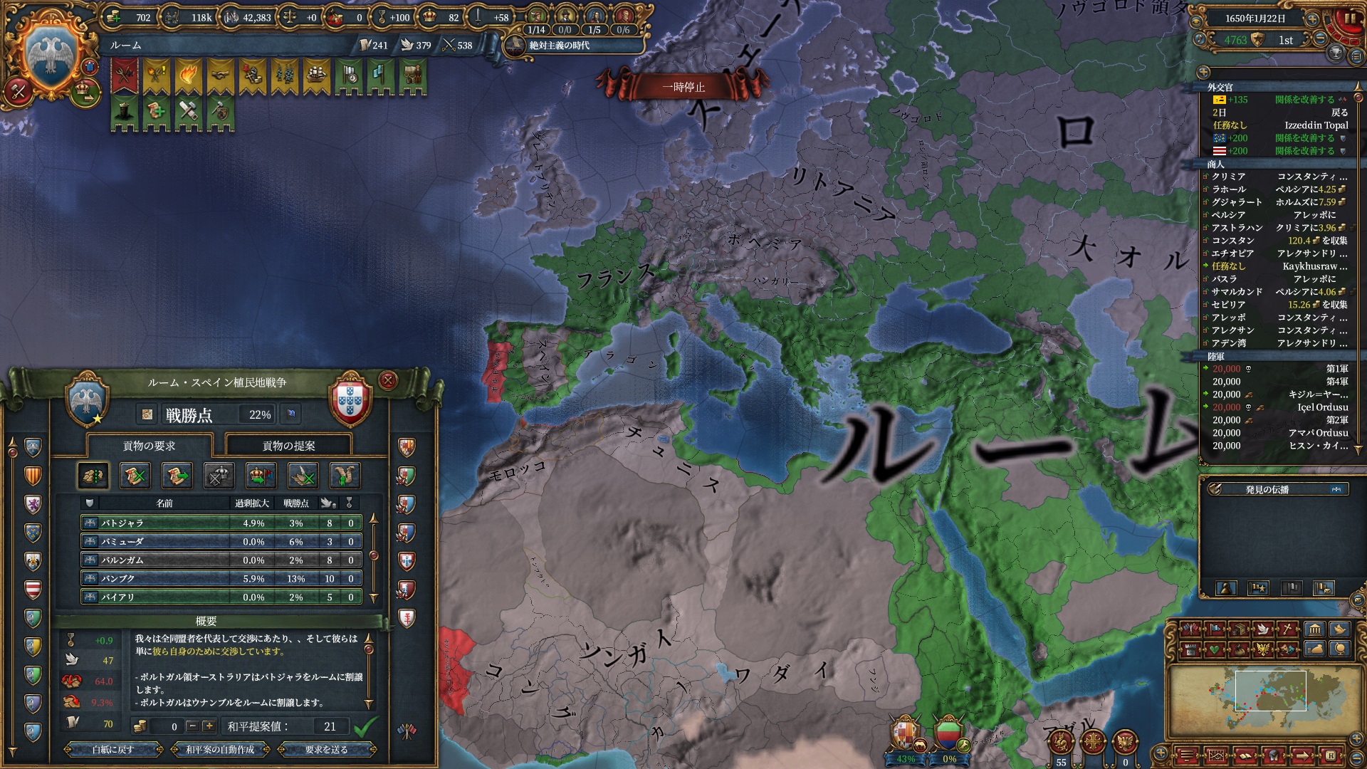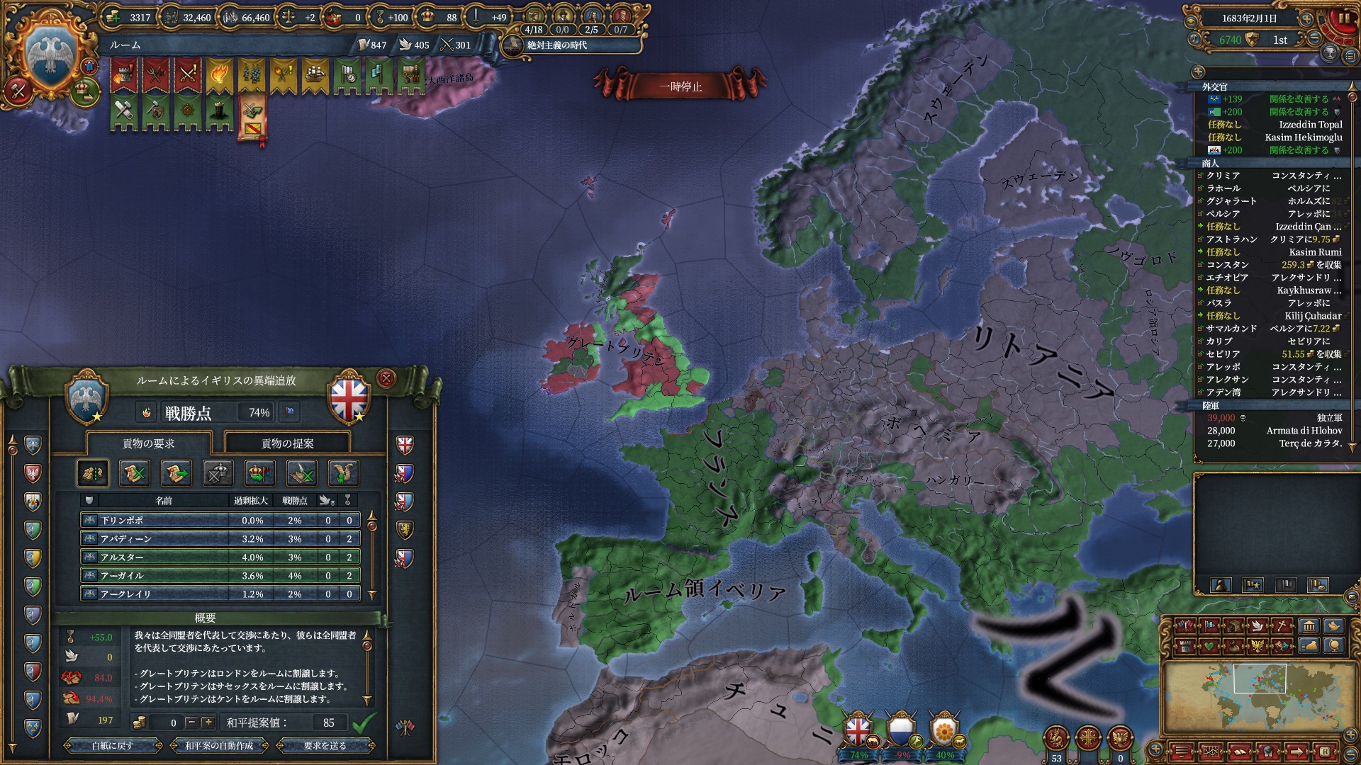 こちらはローマ帝国旧領の大半を手中に収めガリアを同盟国として連れてこれる間柄、何より国名がローマ(現地訛り)とあらゆる面でローマ力(ちから)が勝っています。