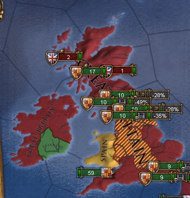 大陸に残ったGascogne、スコットランド属国作成のためにLothian、後はEnglish Mexicoの領土を全部New Spainに割譲させる。これを戦略目標にするわ。