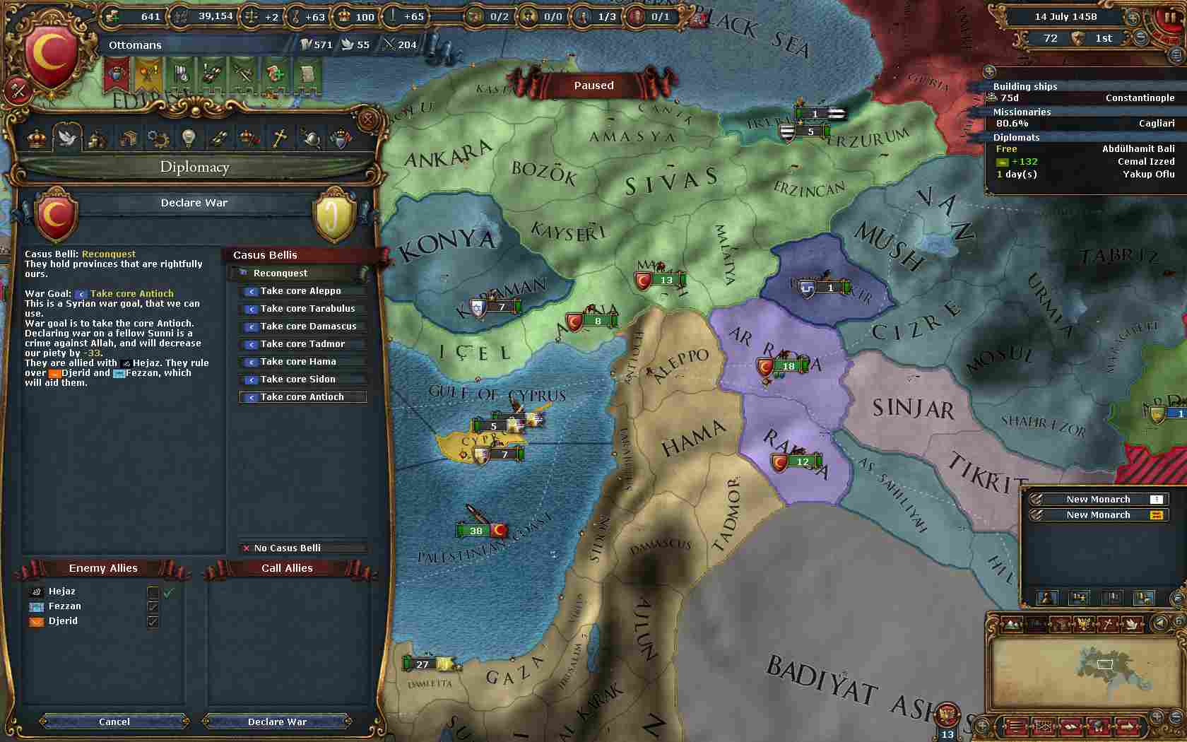 というわけでSyriaのReConquestCBを使って、Mamluksに宣戦布告