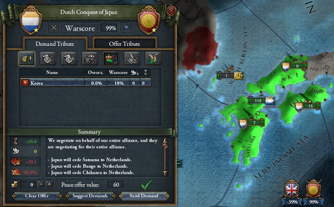 みんなもこの実績狙うときは気を付けてねー。オラニエ家与党だと共和政伝統が毎年ガンガン減っていくから、中国の領土を手に入れるまでは貴族与党で共和政を100付近に維持。中華プロビを手に入れてから次の選挙でオラニエ家与党を選択すればこの実績は何ら苦ではないよー。