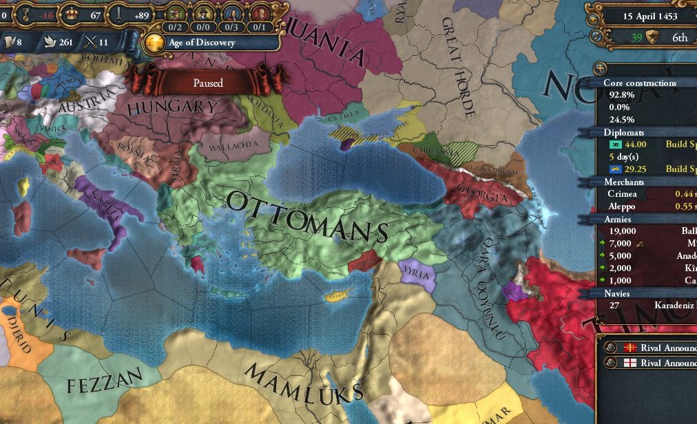 ・ライバル: ビザンチン、黒羊朝、マムルーク朝を指定……Power Projection(以下、PP)稼ぎのため序盤で攻める予定のある相手を指定
