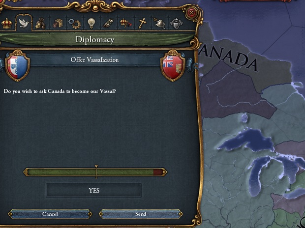 北アメリカ大陸の封鎖に成功したシャヤカ帝国は1650年に自国の植民地国家であったラブラドルに対しカナダの成立を認めた。しかしこれはシャヤカ帝国のラブラドル支配を強化するために行われたものであり、ラブラドルの親シャヤカ貴族をカナダの新首相とすることでラブラドルのシャヤカ帝国への編入を企てるものであった。
