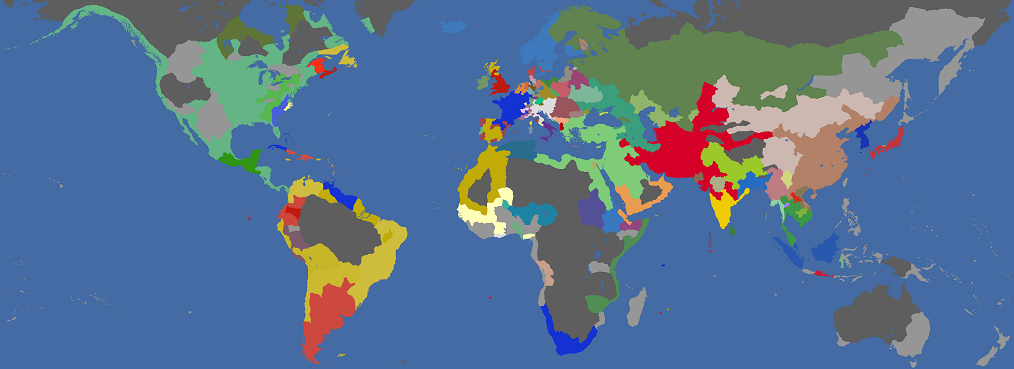 フランスが南アフリカを抑えていますね。この世界でインド帝国を築くのはフランス様かな?ティムールはやっぱり強かった。オイラトなんかに負けない。史実通りロシアがアラスカまで来るのを警戒して西海岸を早期に埋めたのですがロシア様はまだシベリア開拓中みたいですね。。。