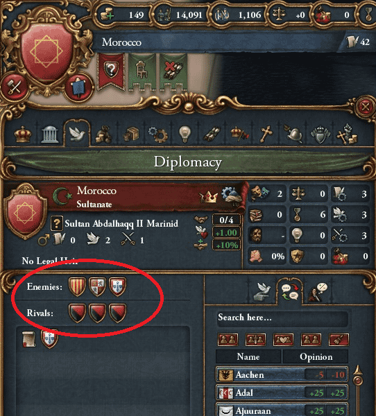 チュニジア以外のマグレブ諸国を食いつくすと、チュニジアがライバル指定してくることが多いと思うが、こちらをライバル指定された上でオスマンと同盟されると面倒くさいことになる。