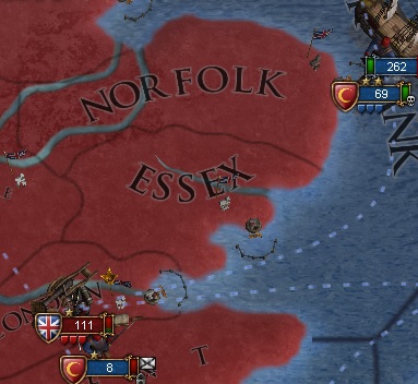 Great BritainはLondon→KentのOttomans軍壊滅→Londonに上陸予定のOttomans軍の上陸阻止を図るも