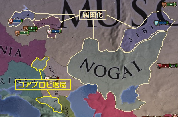 続けて、Nogaiより独立させたSibirとNogaiに対して宣戦布告し両国の属国化を終える。
