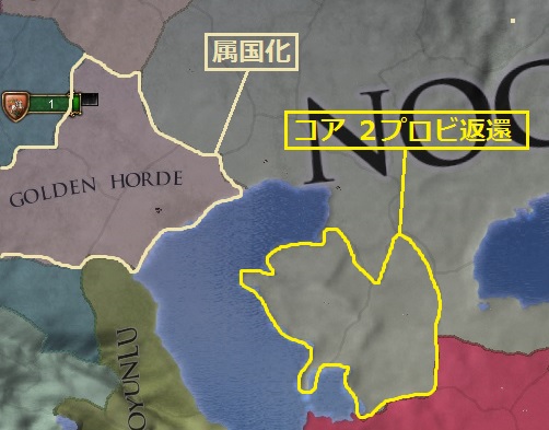 Golden Hordeを一口サイズに削っておいたので、さっそく属国化に乗り出した。