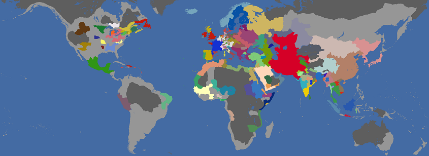 ※1550年の世界地図:なんだこの世界地図は。モスクワが全く伸びていません。フランスはいつもならオーストリア相手に無双しているのですが今回は宣戦してきませんね。ティムール・ヒジャーズ・日本に関してはノーコメントです。